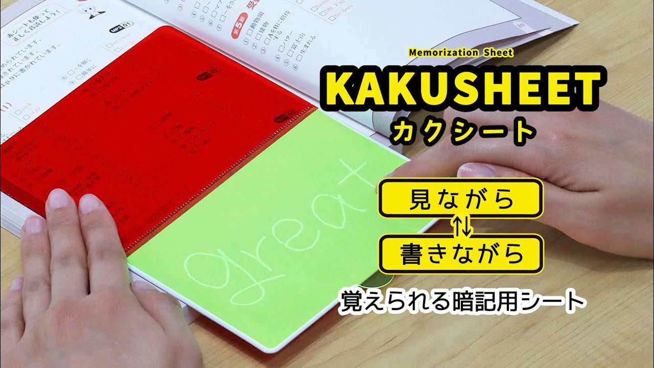 今まで暗記は、暗記用の緑マーカーでチェックした部分の文字を赤シートで隠して確認作業をして…といった”見て”覚えるだけでしたが、この「カクシート」はさらにインク不要の黄色シート(メモ部分)が付いているので、その部分にペンのキャップ部分や指先などで文字を”書いて”覚えることができます。