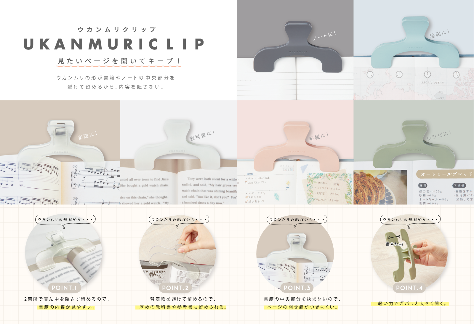 「ウカンムリクリップ」は、教科書など開いておきたいページをしっかりキープできるクリップ。